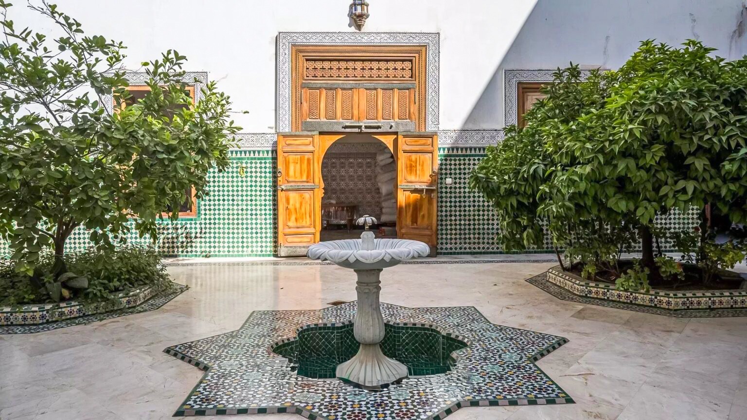 With a ground footprint of 547 sqm, this remarkable property was entirely designed and executed by master Moroccan artisans, faithfully reflecting the elegance and authenticity of traditional riad architecture. All living spaces open onto a magnificent central patio adorned with orange trees, creating a serene and refined atmosphere.